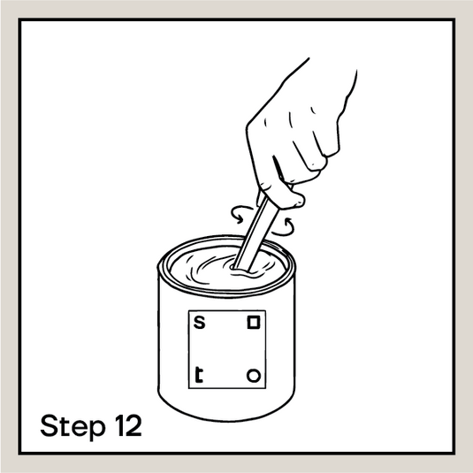 Stir paint thoroughly using enclosed stir stick (more Paint Stir Sticks available here).