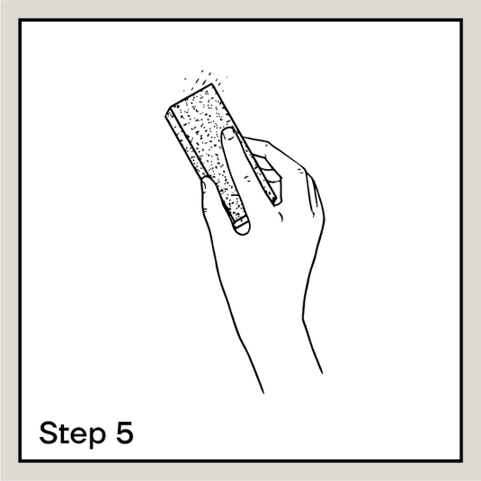 Fill nail holes or blemishes with spackle and sand smooth. Wipe away dust once dry, using a Tack Cloth or a Disposable Cotton Towel.