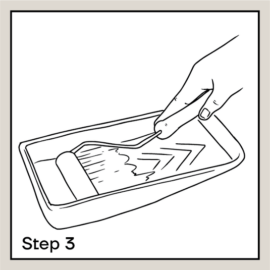 Roll Roller (with Roller Cover) back and forth in paint to evenly coat all sides. Use tray grid or Paint Bucket Grid to remove excess.