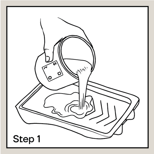Pour paint into the lower level of the Paint Tray (use a Paint Tray Liner for easy cleanup) or our Metal Bucket + Grid.