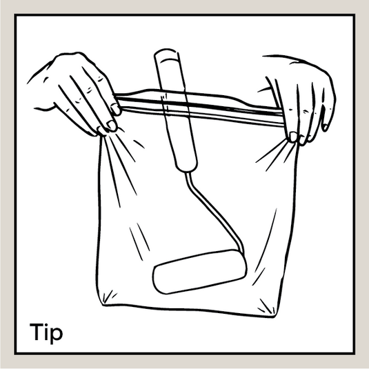 Between coats, store tools in ziplock bag and place plastic wrap over paint tray.